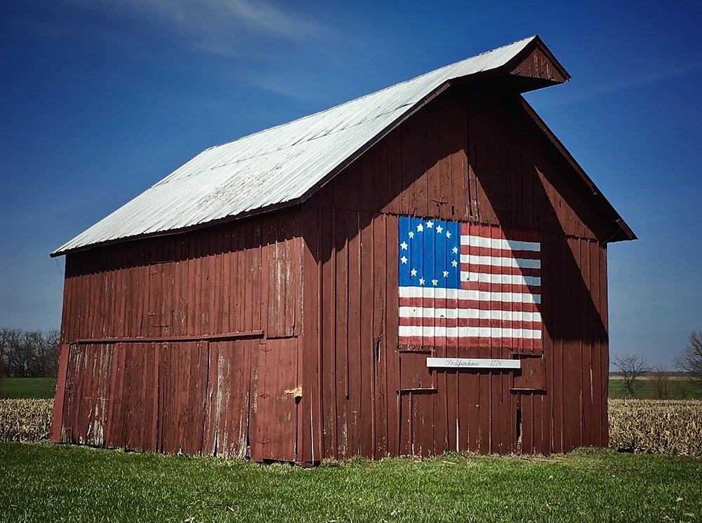 The Weise Family painted the American flag on the side of their barn as a memorial to 9/11.